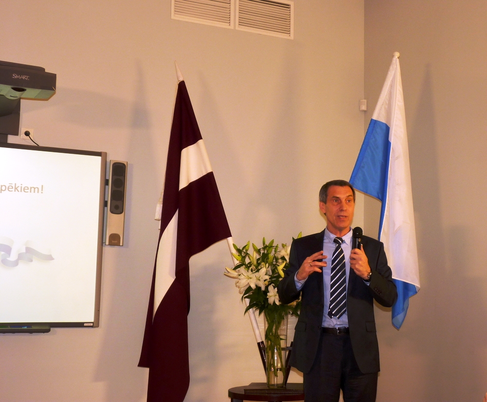 Pirmais uzstājās pazīstamais aktieris un teātra direktors Niks Ērglis un pastāstīja par Latvijas nacionālajiem simboliem, tautas svētumiem – himnu un karogu, par to vēsturisko izcelsmi un par to, kā šie simboli atspoguļo sabiedrības augsti tikumiskos ideālus.